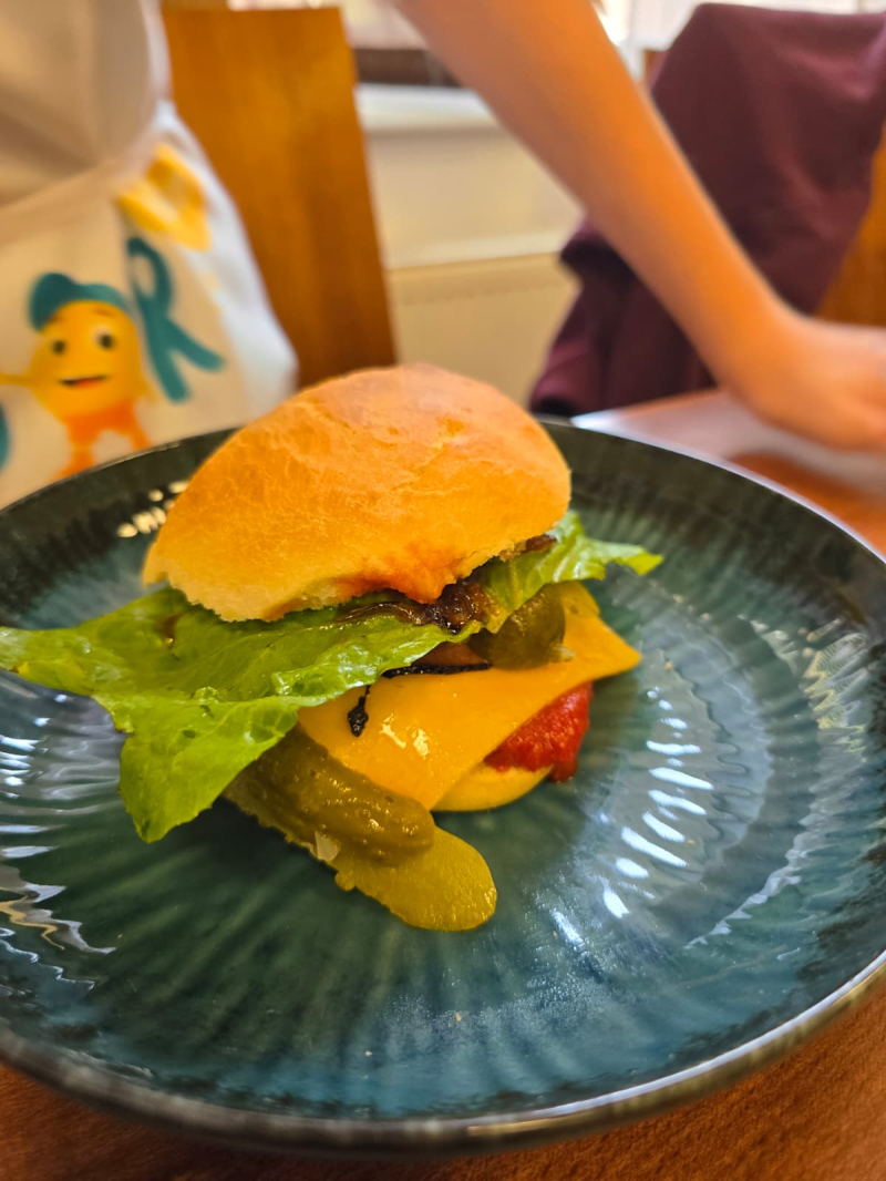 American best of burger + Brownies – 2 druhy domácího burgeru (včetně housky, placky a sestavení vlastního burgeru), domácí hranolky – klasické i batátové, čokoládové Brownies a na závěr americké pancakes s javorovým sirupem a ovocem.