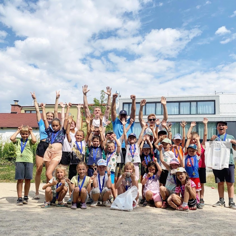 Během týdne máme připravený pro děti pestrý program, který sestavujeme společně s trenéry, kteří budou Vašim dětem po celý týden nablízku. Děti si vyzkouší mnoho sportovních aktivit, ať už se jedná o tradiční sporty, např. fotbal, basketball, atletiku, nebo ty méně tradiční jako je třeba námi vytvořený „letní biatlon“, který se stal již tradicí letních táborů. Celkově si děti vyzkouší přes 15 různých sportů během týdne. Nebudou chybět ani kreativní vsuvky, kde budou děti něco vytvářet, či „vědomostní kvíz“ formou hry. Klasické táborovky budou taktéž součástí. Děti jistě ocení i odměny, které na ně čekají v průběhu tábora.