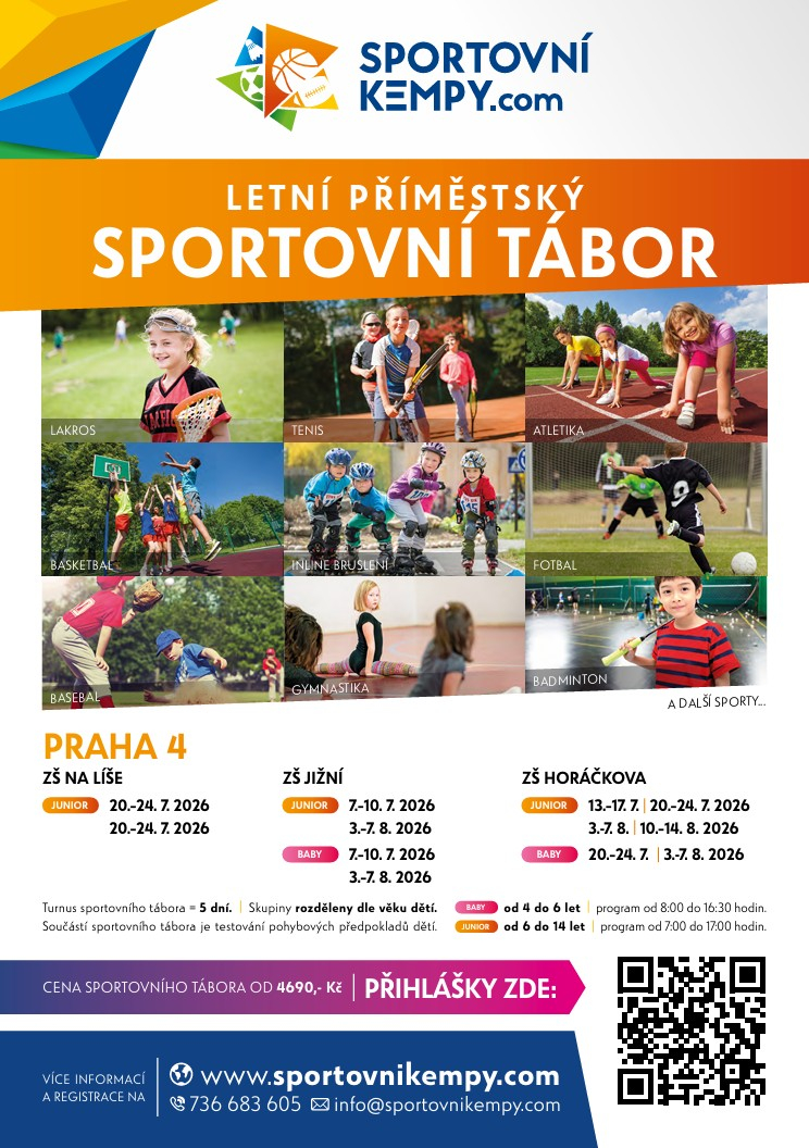 Letní příměstský sportovní tábor je ideální náplní volného času pro všechny děti, které jsou rády v pohybu a chtěly by si vyzkoušet a naučit se nové a zajímavé druhy sportovních aktivit.