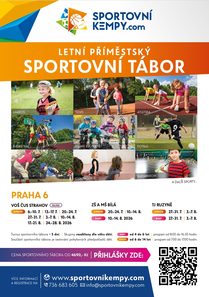 Letní příměstský sportovní tábor je ideální náplní volného času pro všechny děti, které jsou rády v pohybu a chtěly by si vyzkoušet a naučit se nové a zajímavé druhy sportovních aktivit.