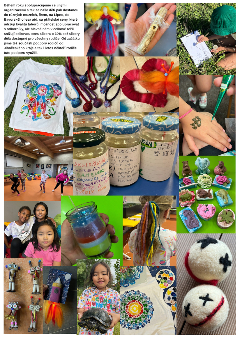 V ceně materiál, 2x výlet, oběd a pití. Vyzkoušíme si, že z každého materiálu se dá něco vytvořit. Fantazii se na tomto táboře meze nekladou a je vítán každý kreativec. Tábor je jen pro 10 dětí. Jelikož hodně tvoříme jde o rodinný tábor, kde klademe důraz na menší kolektiv. 24.–28. 8.2026